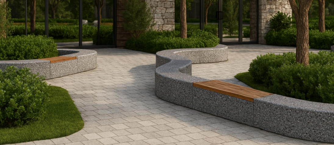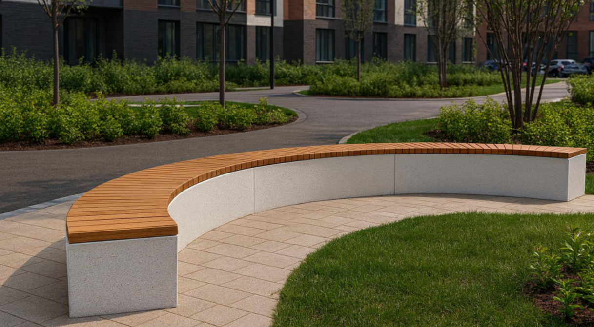 С этой модульной системой вы сможете воплотить любые задумки: радиусные скамьи, скамьи сложных форм, ансамбли скамеек - выбирайте то, что подходит для вашего проекта, а мы воплотим это в жизнь! Текстуру бетона и породу древесины для настила также можно выбрать.